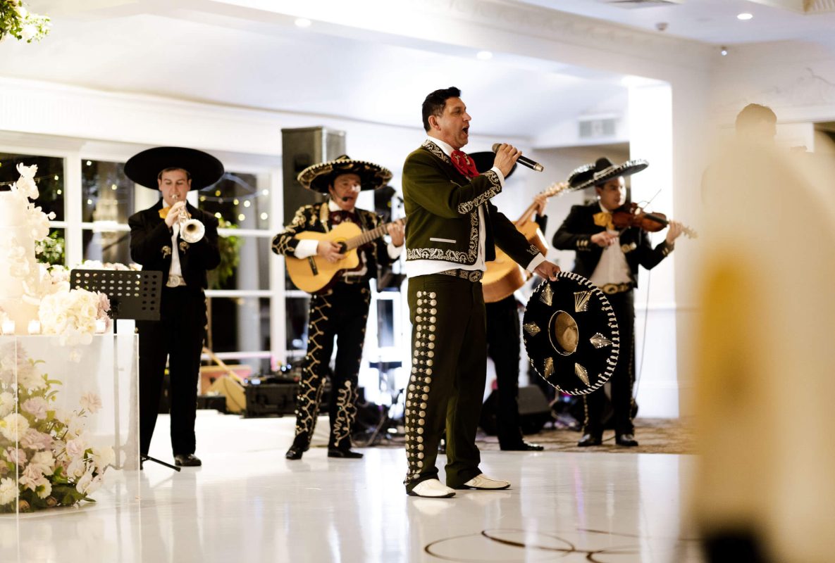 for a modern-day love story, at the Garden Ballroom at Oatlands House. The beauty of this wedding did not stop there, as the entertainment reflected the unity of two families in the Italian singing chef and the Spanish Mariachi Band.