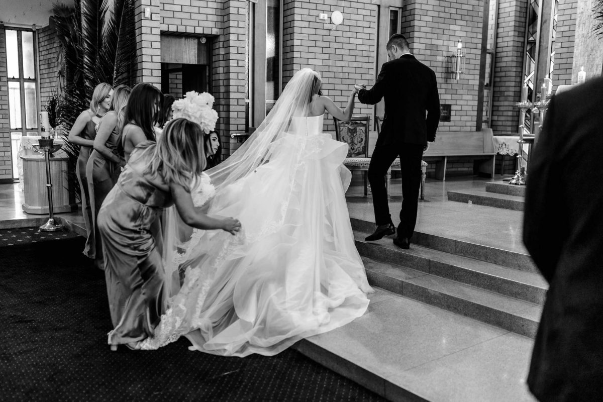 The six-groomsman and Jason suit-up at the William Inglis Hotel whilst Laura and her bridesmaids get ready only minutes away at her family home. All Saints Catholic Liverpool was where the newlyweds tied the knot, followed by an open field bridal shoot in the Western Sydney Parklands. Sun-lit ambiance and classic table arrangements invited guests to the newly established Novella on The Park where Jason and Laura celebrated their eternal love for each other.